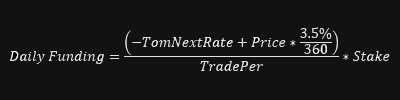 Daily Funding Rate = 0.90625 + 0.801 = 1.70725 (financing rate is subtracted since you’re short)