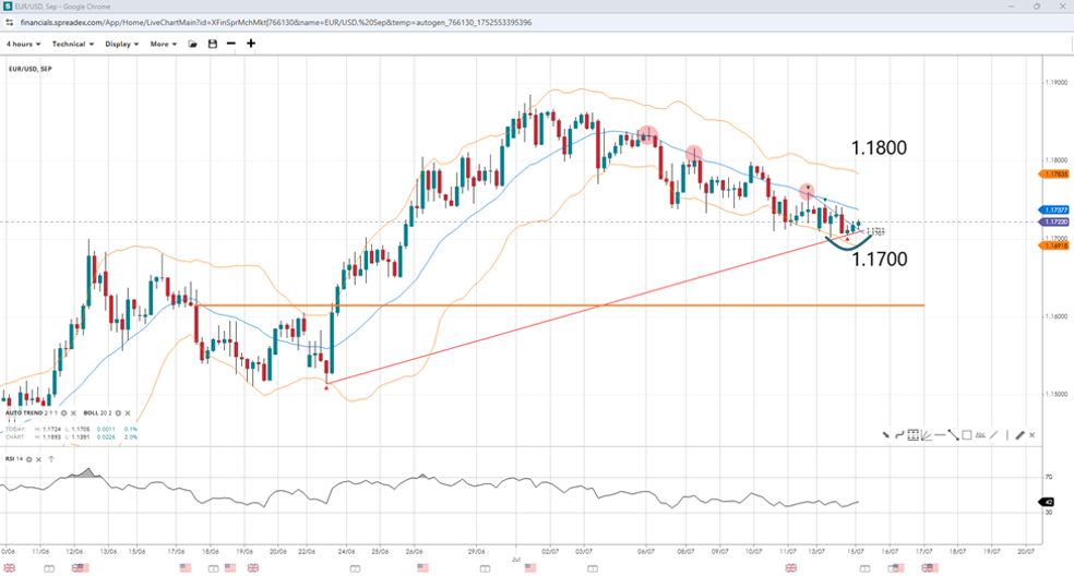 Stock markets witnessed losses at the open, with . The UK’s FTSE escaped the red, as the UK has already signed a trade deal with the US. The automotive sector led losses in Europe, as the threat of tariffs would be on top of the levies on car imports, affecting Germany in particular. German Chancellor Friedrich Merz has been pushing for a quick resolution to the negotiations. The semiconductor sector was also on the backfoot after Broadcom decided not to go ahead with a factory in Spain. However, this may soon change as Dutch lithography firm ASML is in focus ahead of its earnings report on Wednesday, 16 July. Traders look to gauge the effect of the threat of tariffs on the semiconductor industry, which has helped support rising stocks lately.