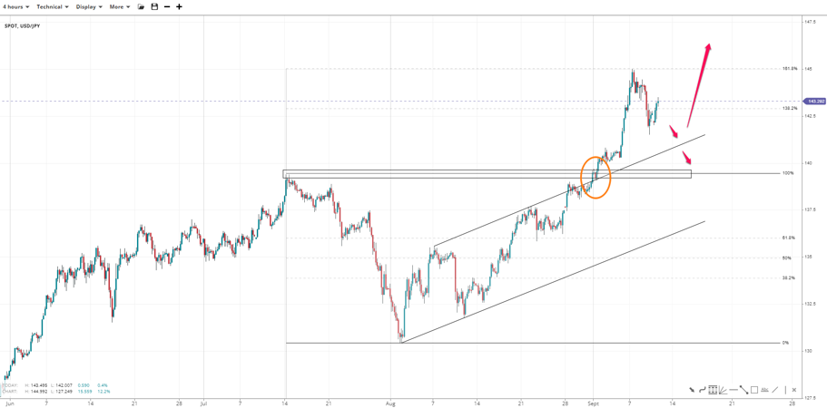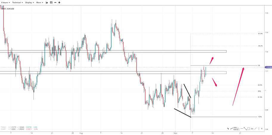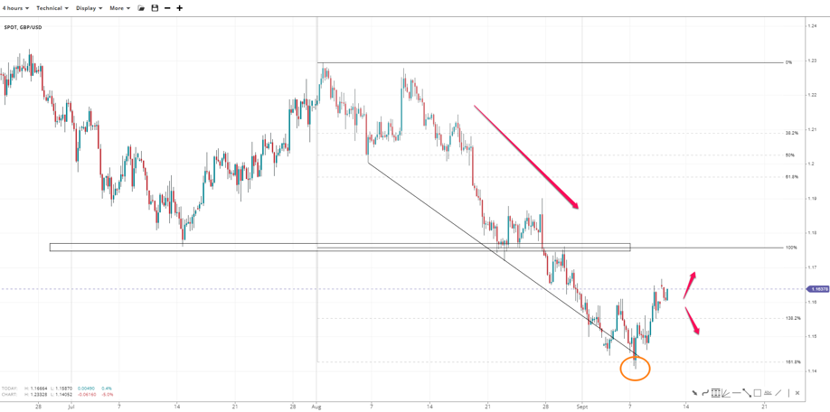 GBP/USD bulls built a good base at 1.1500 after crossing on the positive side of the descending trendline. Following a move down to the 161.8% Fibonacci of the 1.1750-1.2300 leg at 1.1420 first, the 138.2% of 1.1550 is now major support bulls must defend for a chance at 1.1700 and 1.1750.