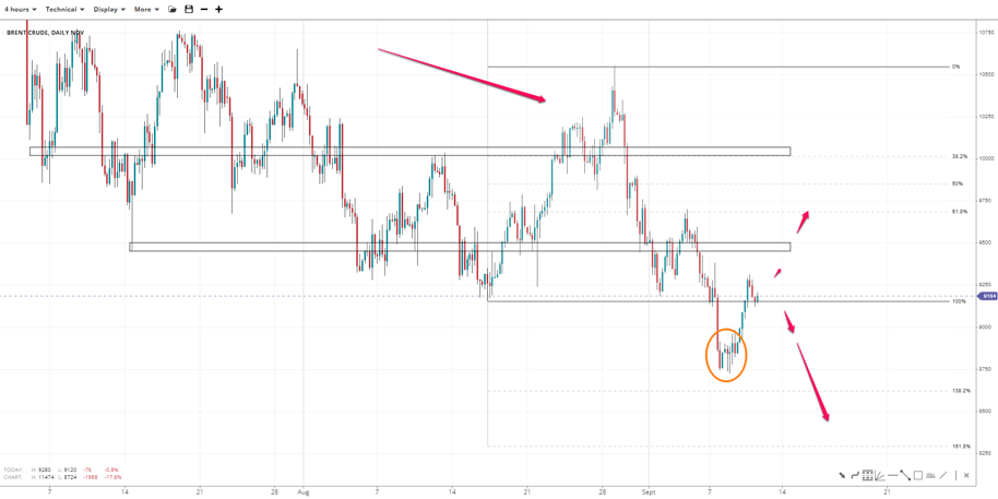 BRENT CRUDE broke down to 87.50 but failed to reach the 138.2% Fibonacci extension of the 105-91.50 leg near 86,00. Another drop could see bulls buy the 161.8% near 83.00 instead, unless bids rise at the round 80.00 level. Outside its range, crude remains under pressure below 95.00 and the swing high near 97.00