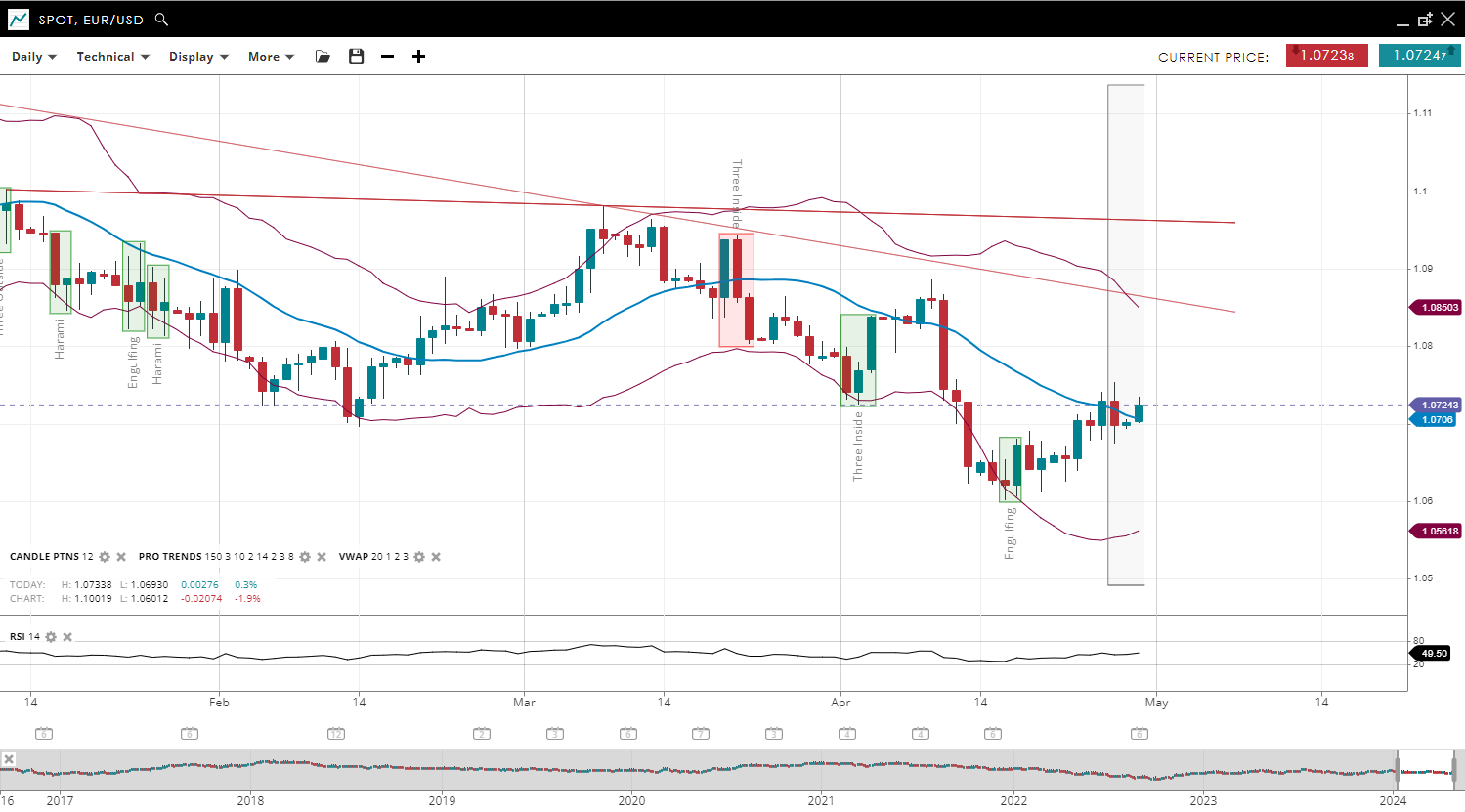 NOTE: These charts use the ‘Pro Trading Tools’ available on the SpreadEx trading platform. To use them, log in to your and click ‘Technical’ from the menu on any chart.