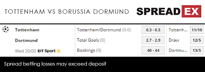 They’re also outside title contenders. While it’d take a serious slip up from Man City or Liverpool, given they are on 60 points to the top 2’s 65, it isn’t unthinkable that Tottenham could sneak their way to the title with a fortunate run of form. With their next fixture not until February 23rd – one of the positives of being knocked out of the FA Cup by Crystal Palace – Spurs have no reason not to go all out on Wednesday. Or, rather, as all out as they can go without the injured Harry Kane and Dele Alli. Son Heung-min, who has been picking up the slack in Kane’s absence, sits at a Super Mega PGM of 35-41, trailed by Fernando Llorente at 27-32, and Lucas and Christian Eriksen, at 19-23 apiece. Comfortably ensconced at the top of the Bundesliga, 5 points ahead of the long-untoppled Bayern Munich, Borussia Dortmund are going to be formidable opponents on Wednesday night. Just thrice have they tasted defeat this season: November’s 2-0 loss at Atletico Madrid, December’s league slip-up at Fortuna Dusseldorf, and last week’s DFB-Pokal penalties-exit at the hands of Werder Bremen. Marco Reus and Paco Alcacer have been neck and neck all season, the former just nudging ahead of the latter thanks to his performances in the Cup. Nevertheless, the pair shares a Super Mega PGM of 21-26, with Maximilian Philipp at 14-18, Mario Gotze at 13-17 and Brit-abroad Jadon Sancho at 12-16. From a rocky start, with losses to Inter Milan and Barcelona, Spurs’ Champions League campaign has somewhat blossomed, the peak arguably being that knockout round-ensuring draw at the Nou Camp. Mauricio Pochettino won’t want it to end there – lucky, then, that Spreadex are offering a Tottenham/Borussia Dortmund Goal Supremacy spread of 0.25-0.45 alongside a Total Goals spread of 2.75-2.95 and Bookings spread of 40-44.