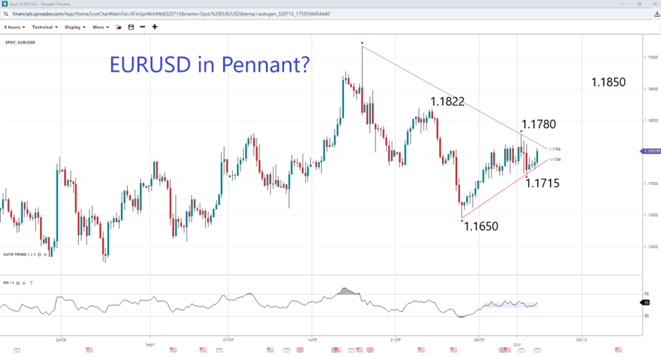 The consensus among analysts is that the September NFP figure will show a growth of 50k jobs, an increase from the 22k jobs added in the previous month. However, this is well below the replacement rate, which is estimated to be around 180K, indicating increasing looseness in the labour market. The unemployment rate is projected to stay unchanged at 4.3%. The dollar has weakened amid the uncertainty from the shutdown, allowing the EURUSD to drift higher.