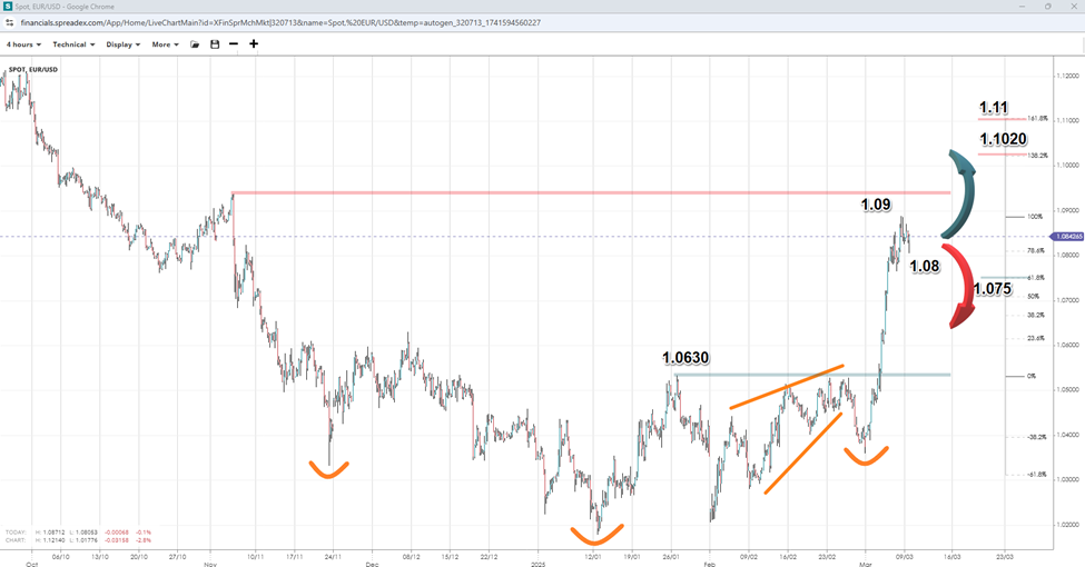 Germany's spending plan aims to revive Europe's powerhouse, triggering a surge in German bond yields and fueling investor optimism about the region's prospects. While trade tensions and inflation concerns have supported global yields, Germany's relatively low debt-to-GDP ratio has helped alleviate some fears. As the details of the fiscal plan unfold, however, volatility may persist, with the prospect of increased bond issuance and inflationary pressures potentially continuing to support the euro's upward trajectory.