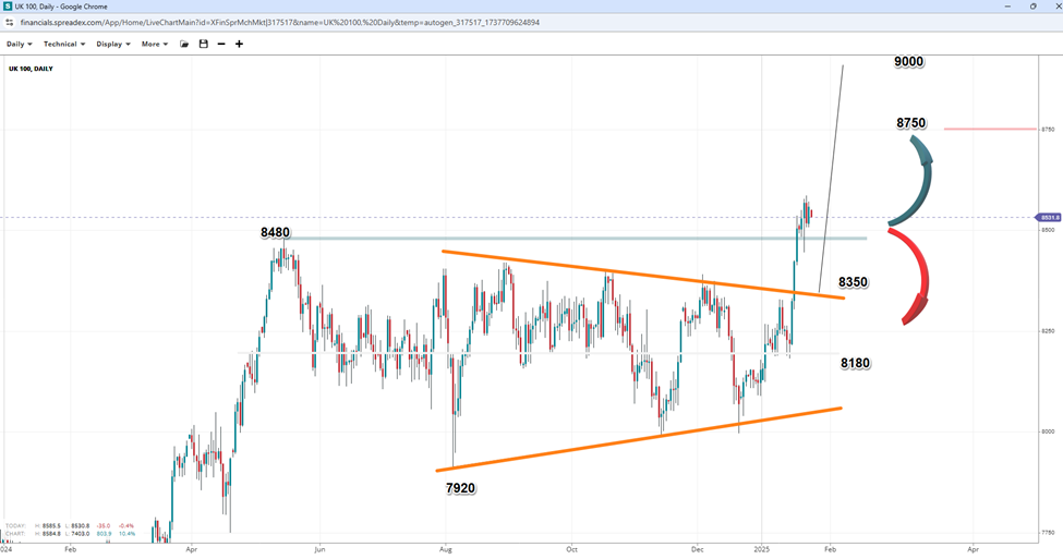 Despite domestic concerns at home, the UK’s FTSE 100 has extended to new record highs due to its global exposure and optimism surrounding the US economic outlook. The inauguration of Trump and his business-friendly policies, along with the potential avoidance of tariffs, have contributed to the gains. However, challenges remain, including concerns over Chinese demand, volatility in commodity prices and mixed economic indicators in the UK.
