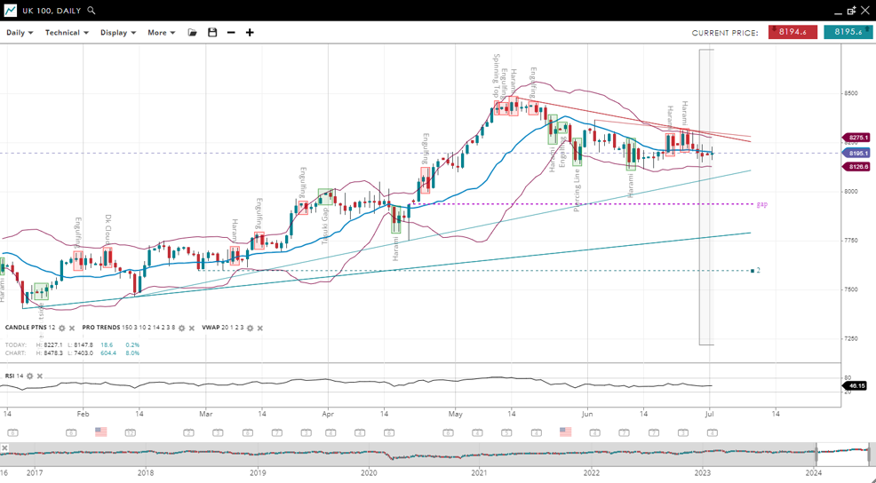 | UK 100 | Bullish | Consolidation | 8195 | 8195.2 | 8126 | 8275 | 46 |