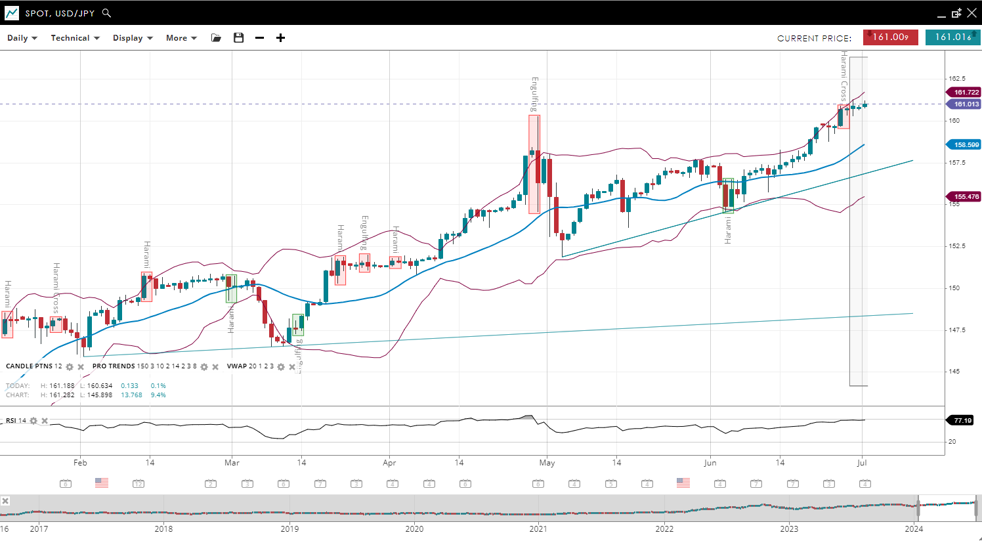 | USD/JPY | Bullish | Impulsive | 161.01 | 158.59 | 155.47 | 161.72 | 77 |