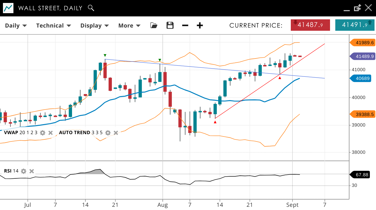Wall Street | Bullish | Impulsive | 41489 | 40689 | 39388 | 41989 | 67 |