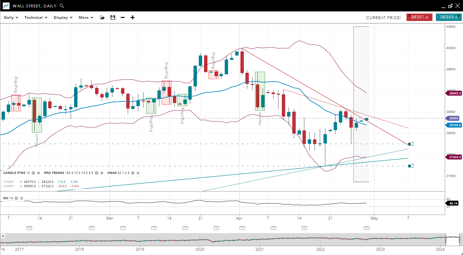 | Wall Street | Bearish | Impulsive | 38,117 | 38,444 | 37,183 | 39,704 | 41 |