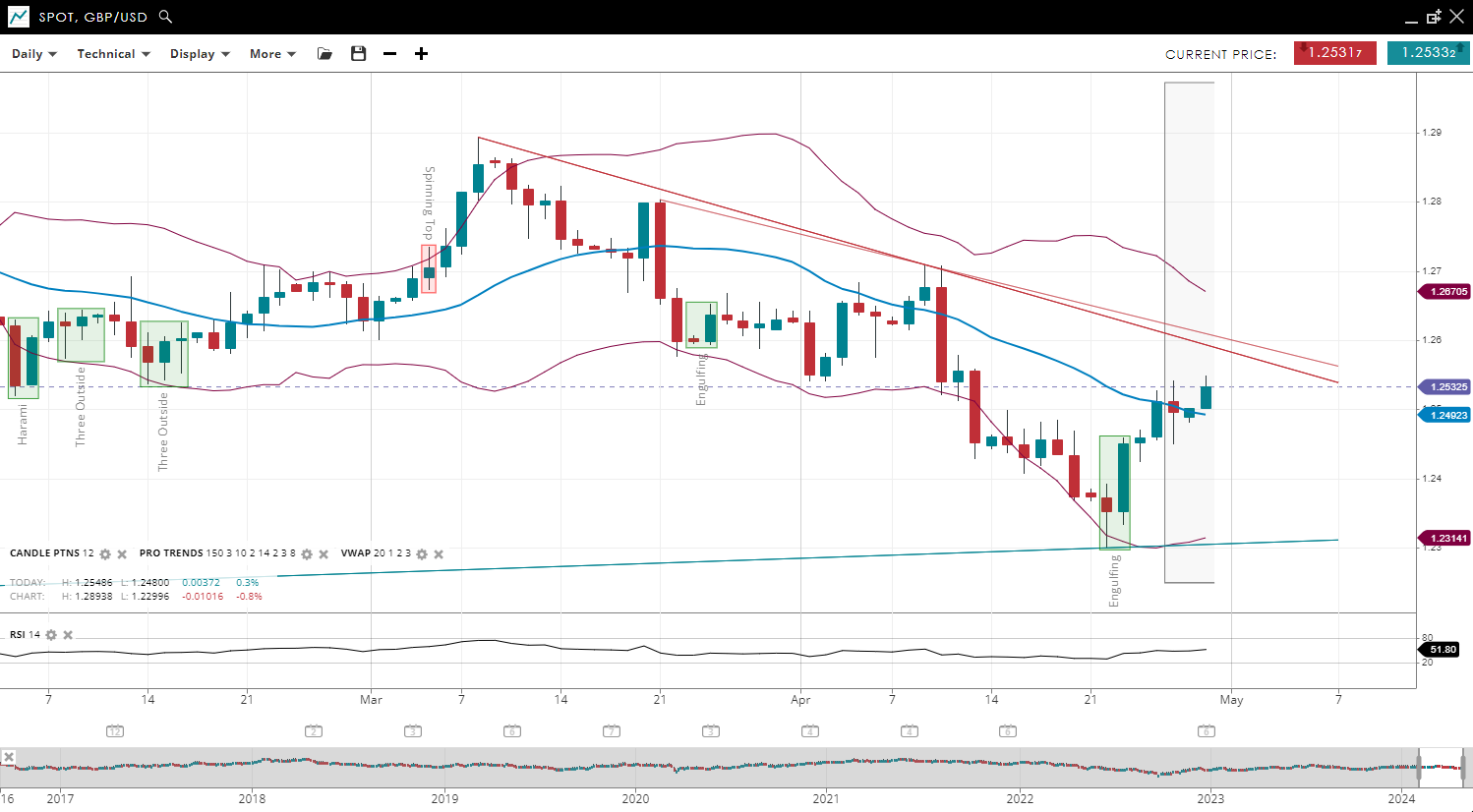 NOTE: These charts use the ‘Pro Trading Tools’ available on the SpreadEx trading platform. To use them, log in to your and click ‘Technical’ from the menu on any chart.