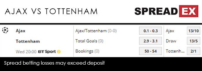 But things aren’t that simple. At the top of the Eredivise thanks to a superior goal difference with 2 games to go, Ajax have been this season’s surprise package in Europe. At almost every stage of the competition they’ve been underdogs. Yet they twice held Bayern Munich in Group E, beat Real Madrid 4-1 at the Bernabeu, and bested Juventus 2-1 in Turin. That superlative form outside of Amsterdam carried over into last Wednesday’s trip to Tottenham’s new stadium. Donny van de Beek’s early strike gifted Ajax a potentially crucial away goal, meaning Spurs at least need to score at least twice if they are to avoid extra time and penalties to create an all-English final (the first since 2008). While still missing the injured Harry Kane, Mauricio Pochettino does have a returning Son Heung-min, back after missing the 1st leg due to suspension. On 20 goals in all competitions, the South Korean is at a Super Mega PGM of 27-32, ahead of Fernando Llorente at 22-27. Super Serb Dusan Tadic has both men beat, however; on 34 goals, he goes into the 2nd leg at a Super Mega PGM of 33-39. Klaas-Jan Huntelar is only a smidge behind at 32-38 having found the back of the net 21 times. The visitors aren’t in the best headspace at the moment. Including that 1st leg defeat and Saturday’s loss at Bournemouth, Spurs have won just 6 times in their last 15 fixtures; Ajax, in contrast, have lost only 4 competitive games in 2019, and once in the Champions League full stop (their sole home defeat of the season). The odds are, then, perhaps stacked against the North Londoners, with Spreadex offering an Ajax/Tottenham Goal Supremacy spread of 0.1-0.3, alongside a Total Goals spread of 2.9-3.1 and a Bookings spread of 50-54.